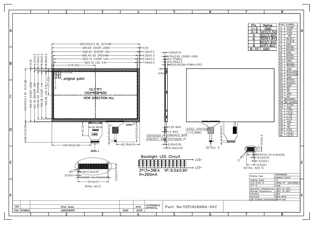 ТФТ ЛЦД је врста течног кристалног приказа који користи технологију Танки филм транзистор да би побољшао квалитет слике и има бројне апликације у свакодневном животу. Као професионални ТФТ модул произвођач и добављач у Кини, оно што Вицтроник 10,1 инчни 1024 × 600 ИПС ТФТ модул чини ЦТП различитим од других произвођача? Прво, нуди типичну светлину 420 ЦД / м², широких углова гледања у свим упутствима и контрастни омјер 800: 1, обезбеђујући одличну читљивост из различитих углова. Друго, интегрише јединицу за позадинско осветљење које користи 39 белих ЛЕД-ова са типичним животом од 30.000 до 50.000 сати (до 50% почетне светлости), осигуравајући јасну видљивост у свим условима осветљења. Поред тога, подржава 6/8 битни ЛВДС интерфејс са ХКС8282А11 + ХКС8696А контролером и робусном контрацитивном панелом са 5 тачака са ГТ928 ЦТП контролером. Поред тога, пролази ригорозно тестирање животне средине, укључујући термални шок (-30 ° Ц ↔ + 80 ° Ц циклусе), складиштење влажности (60 ° Ц / 90% РХ), и механичка вибрација, осигуравајући да може да делује неприметно у продуженом температурном опсегу (-20 ° Ц до + 70 ° Ц).