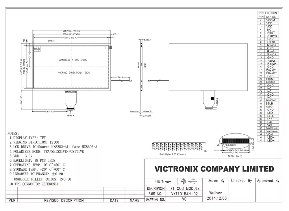 ВКСТ101БАХ-02 је ТФТ-ЛЦД модул. Састоји се од ТФТ-ЛЦД панела, Дривер ИЦ, ФПЦ, леђа светлосне јединице. Подручје приказа 10.1 садржи 1024 к 600 пиксела и може да се приказује до 16,7 милиона боја. Овај производ у складу са Критеријумом еколошког окружења РОХС-а