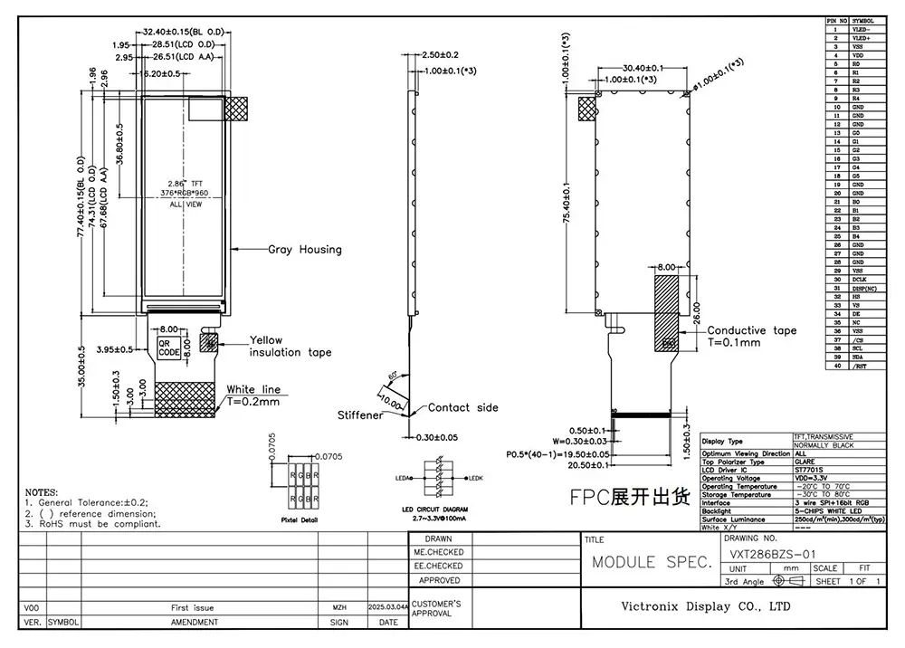 У доба интелигенције, ТФТ модул нам омогућава да визуелно представимо потребне податке. Квалитет ТФТ модула је критичан утицај на његову примену. Које су предности ВИЦТРОНИКС-а 2,86 инча 376 × 960 ИПС ТФТ модула? У почетку је његов 300 ЦД / м² овјесност, 1500: 1 контрастни омјер, угао гледања од 85 степени у свим правцима, а 80% униформности осигуравају живописне слике. Друго, подржава СПИ + 16Бит РГБ интерфејс са СТ7701С, а бели позадинско осветљење од 5 марама у износу од 30.000 до 50.000 сати, обезбеђујући његову дугорочну употребу у различитим индустријским апликацијама. Поред тога, у складу је са РОХС стандардима и успешно прође строгости тестове поузданости, укључујући термички удар, влажност и заштиту ЕСД до 8кВ ваздуха и 4кВ контакт. Овај производ делује ефикасно на екстремним температурама у распону од -20 ° Ц до + 70 ° Ц и може да издржи тешке услове складиштења са -30 ° Ц до + 80 ° Ц.