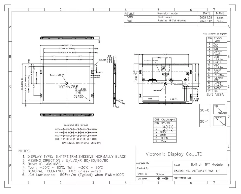 ТФТ ЛЦД је врста течног кристалног приказа који користи технологију Танки филм транзистор да би побољшао квалитет слике и има бројне апликације у свакодневном животу. Као професионални произвођач и добављач ТФТ модул у Кини, због чега се Вицтроник 8,4 инчни 1024 × 768 ИПС ТФТ ЛЦД разликује од осталих произвођача? Прво, нуди типичну светлост 500 ЦД / м², 85 ° широких углова прегледавања свих праваца и контрастни омјер од 1500: 1, обезбеђивање одличне читљивости из различитих углова. Друго, интегрише јединицу за позадинско осветљење које користи 32 бели ЛЕД са типичним животом од 50.000 сати (до 50% почетне светлости), обезбеђујући јасну видљивост у свим условима осветљења. Поред тога, подржава ЛВДС интерфејс са ЕСД заштитом и ЈД9168С контролером. Поред тога, пролази ригорозно тестирање на животну средину, укључујући термални шок (-30 ° Ц ↔ + 80 ° Ц циклусе), складиштење влажности (60 ° Ц / 90% РХ), и механичка вибрација, обезбеђујући да може да делује неприметно у продуженом температурном опсегу (-30 ° Ц до + 80 ° Ц).